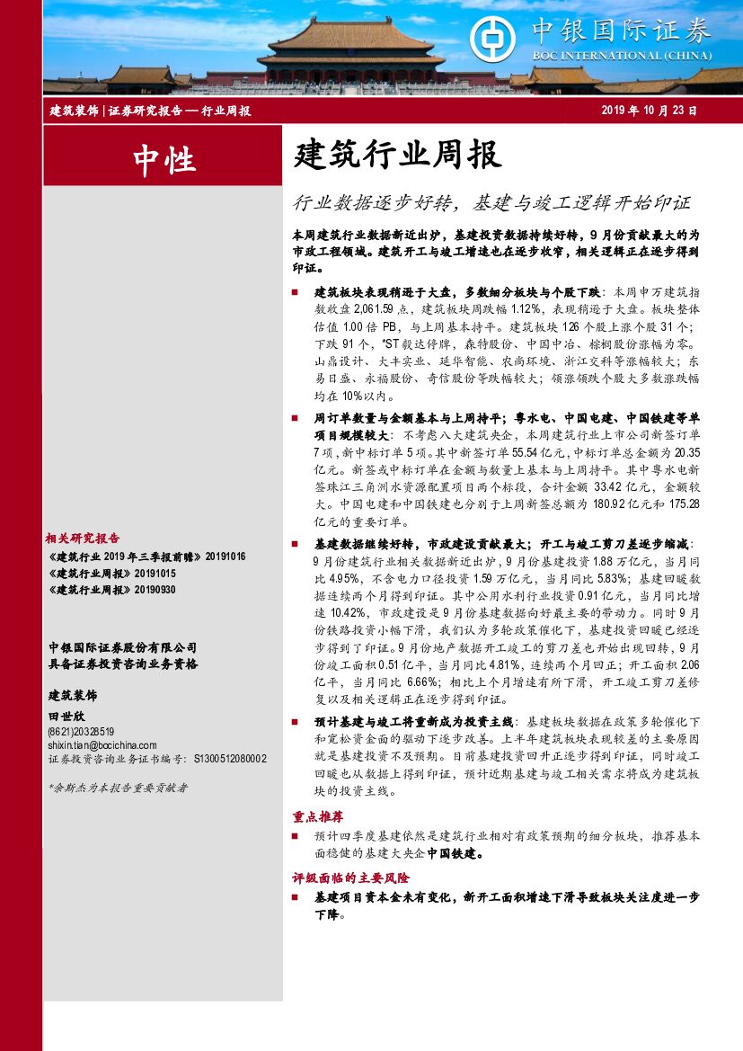 中银国际:建筑行业周报:行业数据逐步好转,基建与竣工逻辑开始印证.pdf
