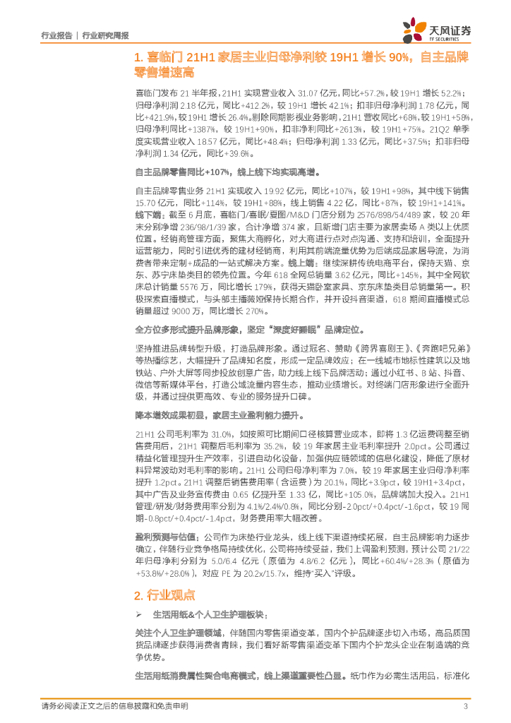 天风证券:轻工制造行业研究周报:喜临门21H1家居归母净利较19H1+90%,自主品牌高增速,软体集中度提升趋势不改.pdf
