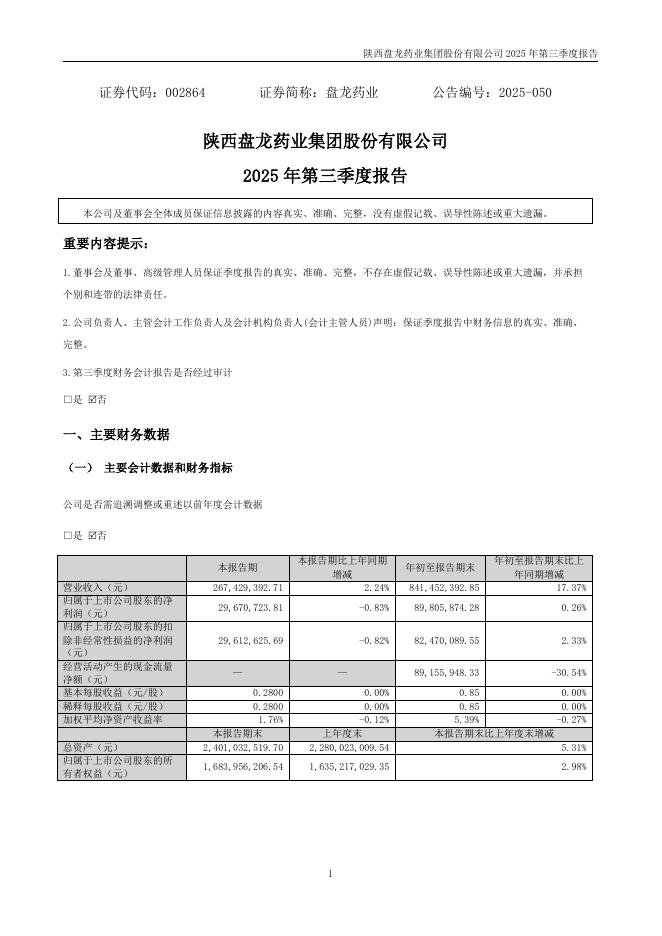 002864-盘龙药业:2025年三季度报告.pdf