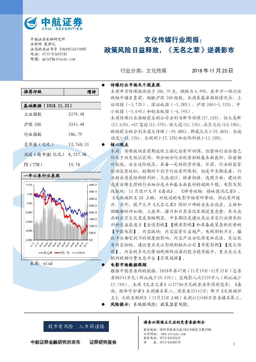 中航证券:文化传媒行业周报:政策风险日益释放,《无名之辈》逆袭影市.pdf