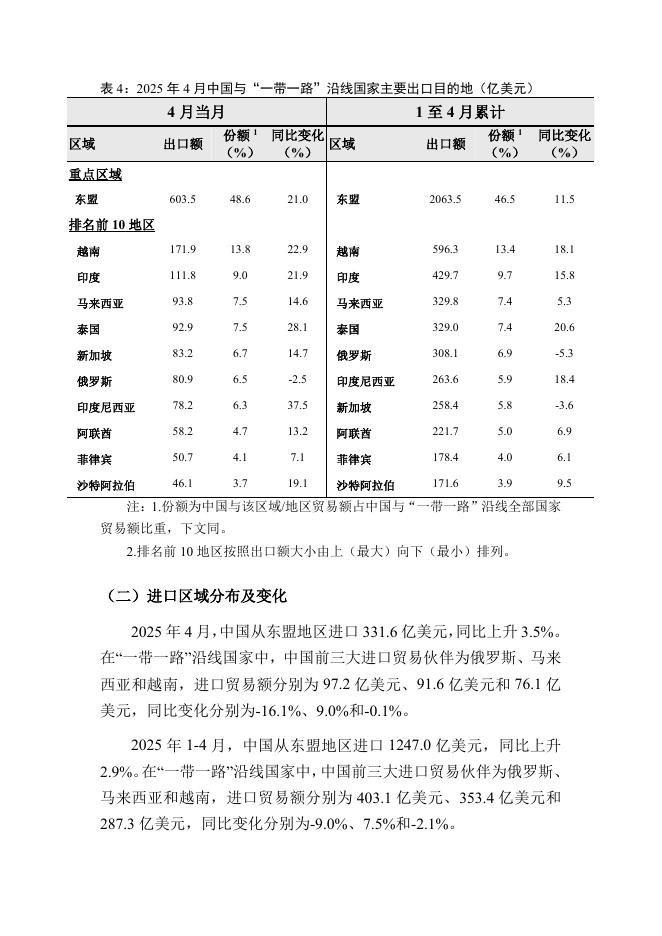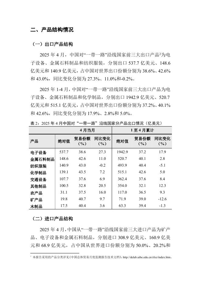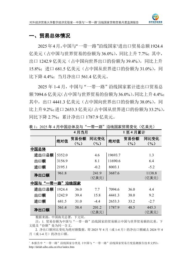 对外经济贸易大学:中国与“一带一路”沿线国家货物贸易月度监测报告(2025年1-4月).pdf