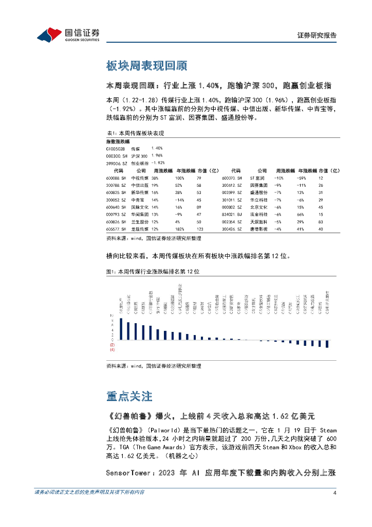 国信证券:传媒互联网周报:《幻兽帕鲁》爆火,AI应用年度下载量和内购收入同比增长60%以上.pdf
