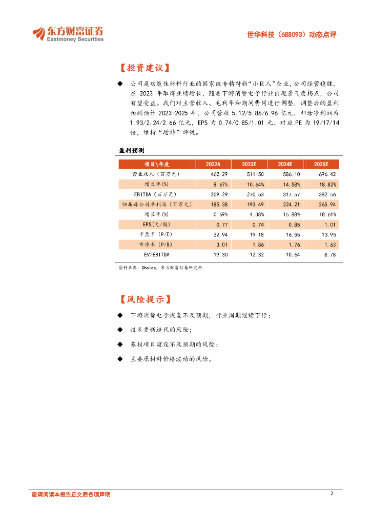 东方财富证券:世华科技(688093)-动态点评:功能性材料“小巨人”,2023年营收利润增长.pdf
