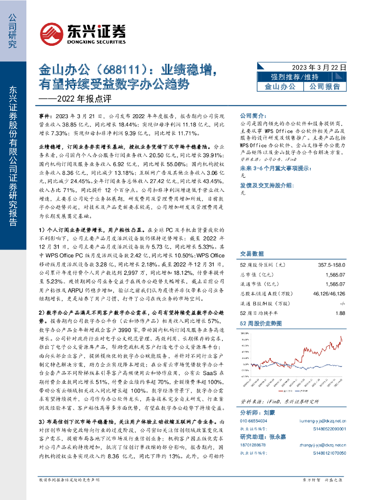 东兴证券:金山办公(688111)-2022年报点评:业绩稳增,有望持续受益数字办公趋势.pdf