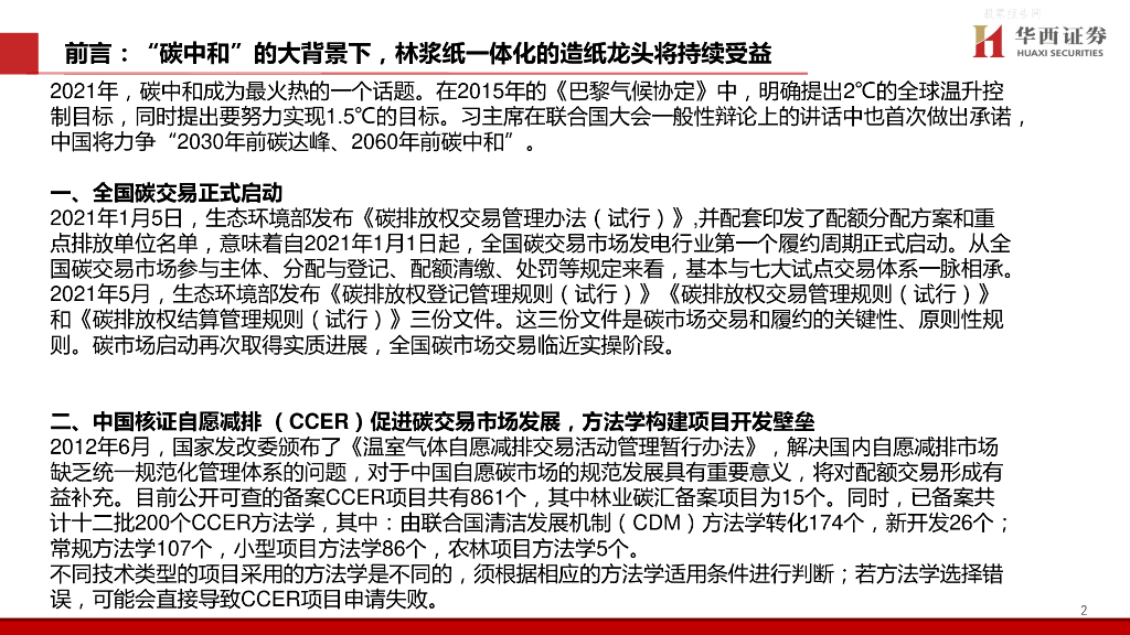 华西证券:轻工行业“碳中和”专题(1)林业碳汇百亿市场蓄势待发,造纸龙头马太效应突显.pdf