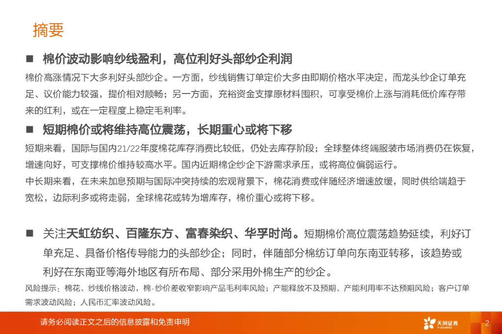 天风证券:纺织制造行业专题研究:棉价高位震荡,运营持续优化,头部纱企利好延续.pdf