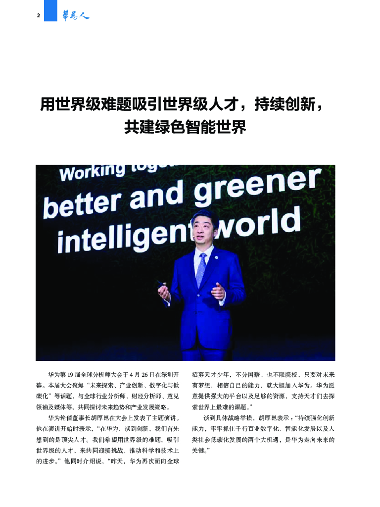 华为人:用世界级难题吸引世界级人才,持续创新,共建绿色智能世界.pdf