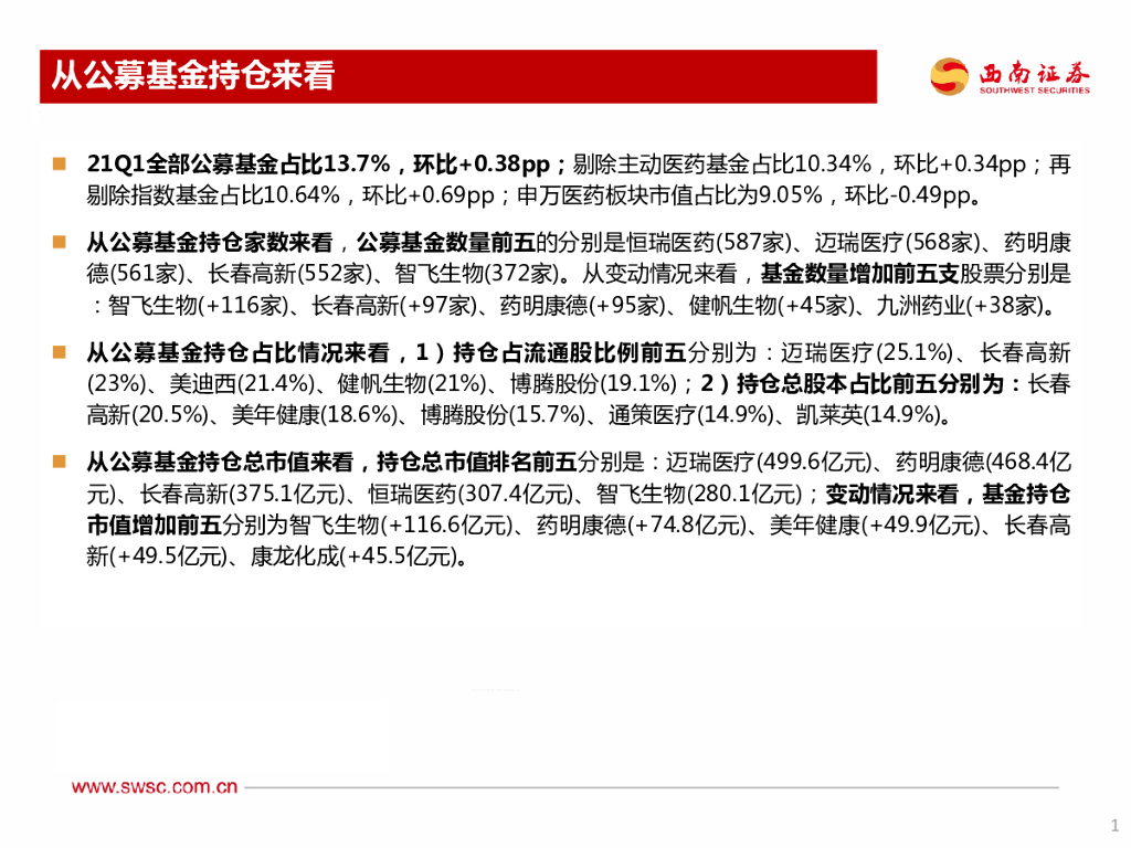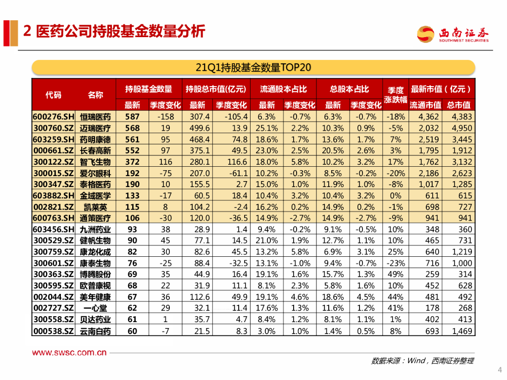 西南证券:医药行业1Q2021持仓分析:医药仓位略有回升,核心资产有所分化.pdf
