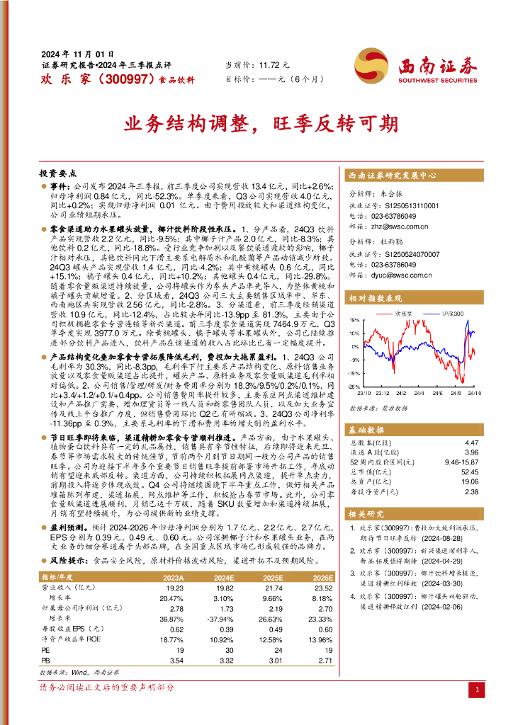 西南证券:欢乐家(300997)-业务结构调整,旺季反转可期.pdf