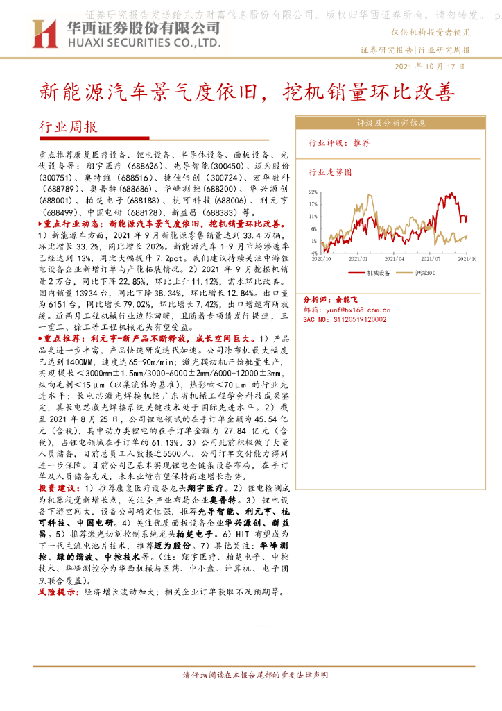 华西证券:机械行业周报:新能源汽车景气度依旧,挖机销量环比改善.pdf