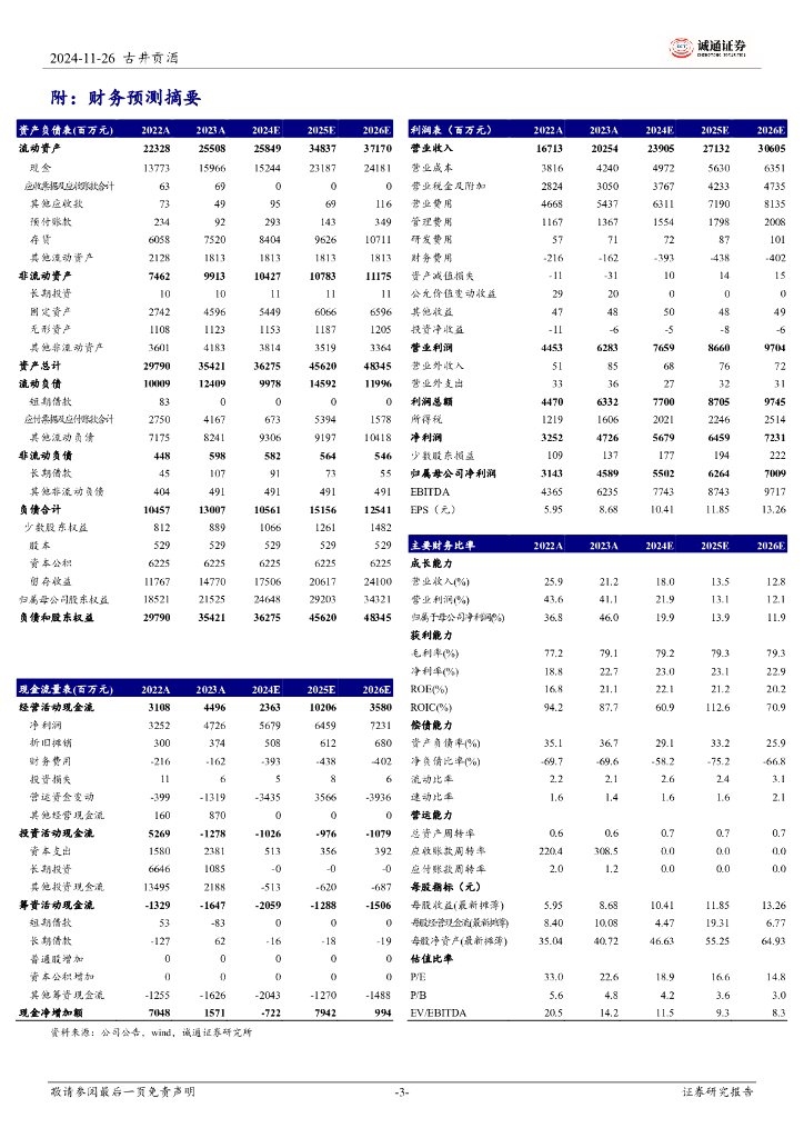 诚通证券:古井贡酒2024年三季报点评:依托省内优势做好全价位产品线布局.pdf