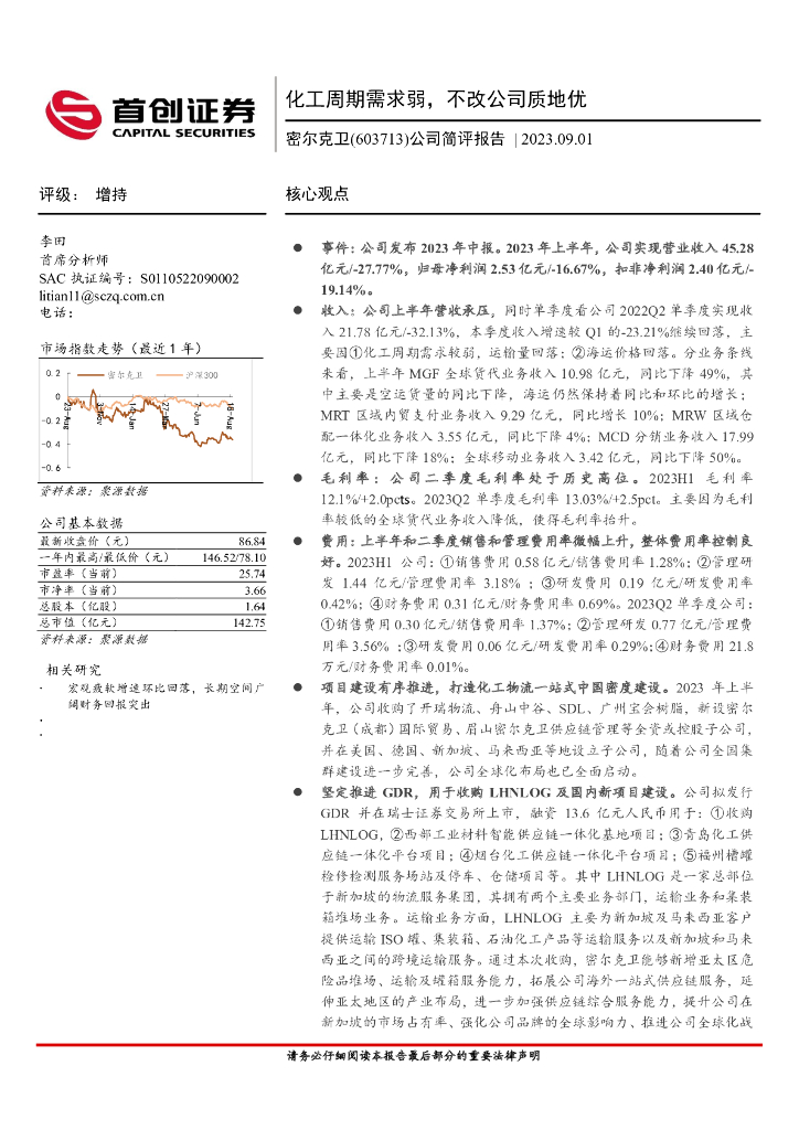 首创证券:密尔克卫(603713)-公司简评报告:化工周期需求弱,不改公司质地优.pdf