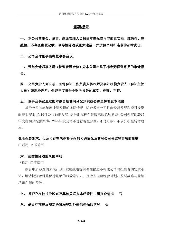 600963-岳阳林纸:岳阳林纸股份有限公司2025年年度报告.pdf