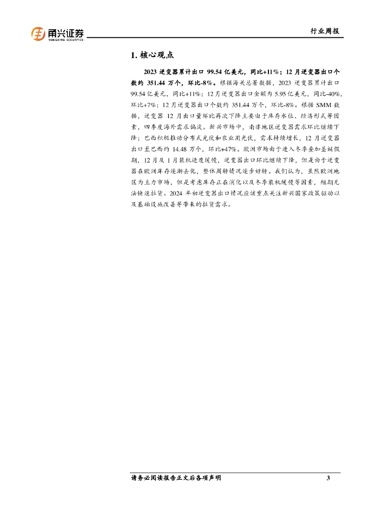 甬兴证券:光伏行业周报:2023年逆变器出口99.54亿美元,同比+11%.pdf