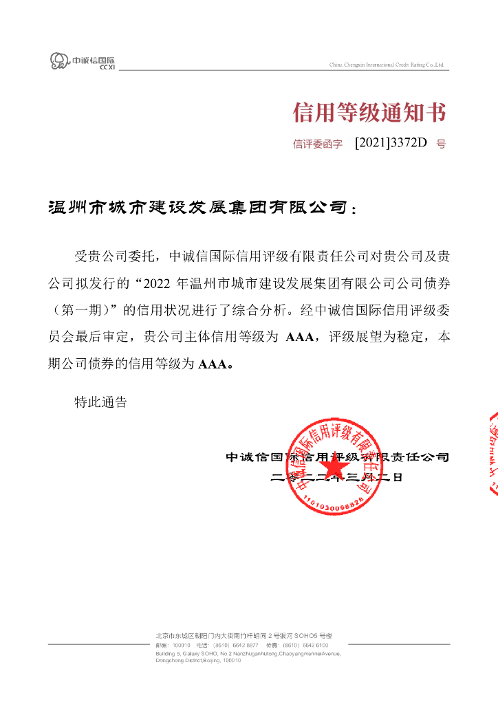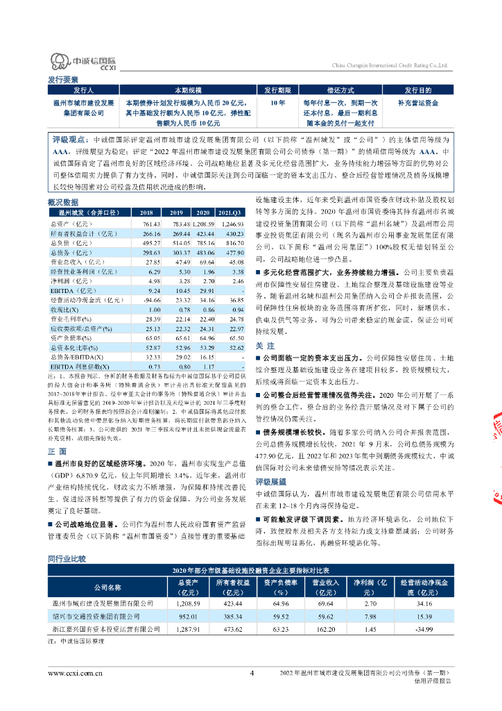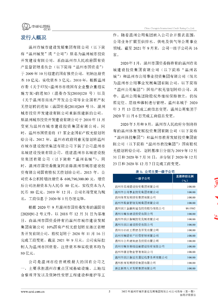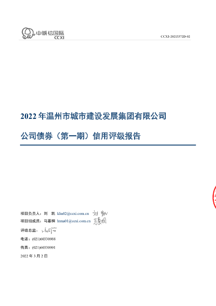 中诚信:2022年温州市城市建设发展集团有限公司公司债券(第一期)信用评级报告.pdf