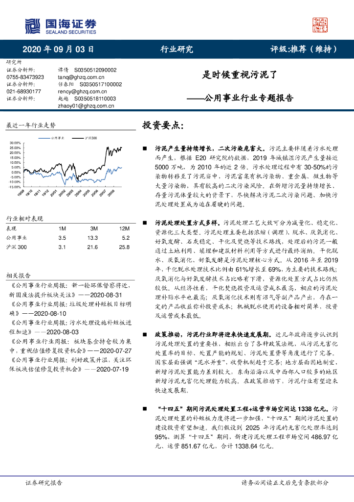 公用事业行业专题报告:是时候重视污泥了-国海证券.pdf