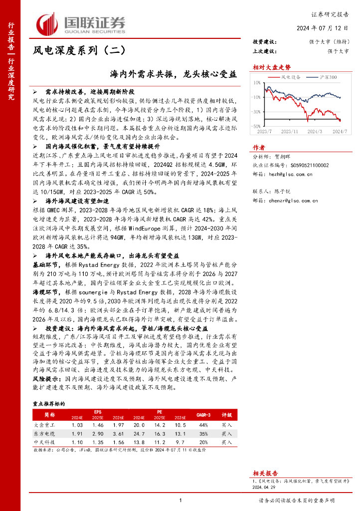 国联证券:风电深度系列(二):海内外需求共振,龙头核心受益.pdf