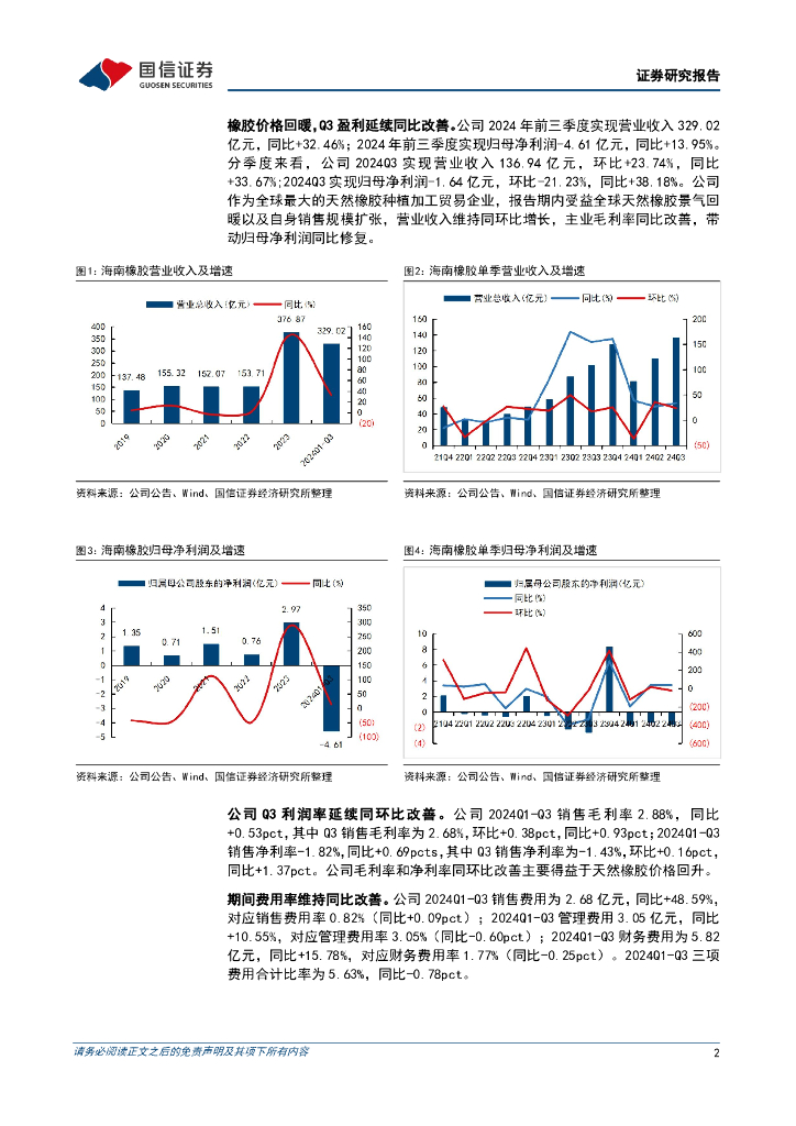 国信证券:海南橡胶(601118)-2024三季报点评:受益橡胶价格回暖,Q3归母净利润同比+38%.pdf