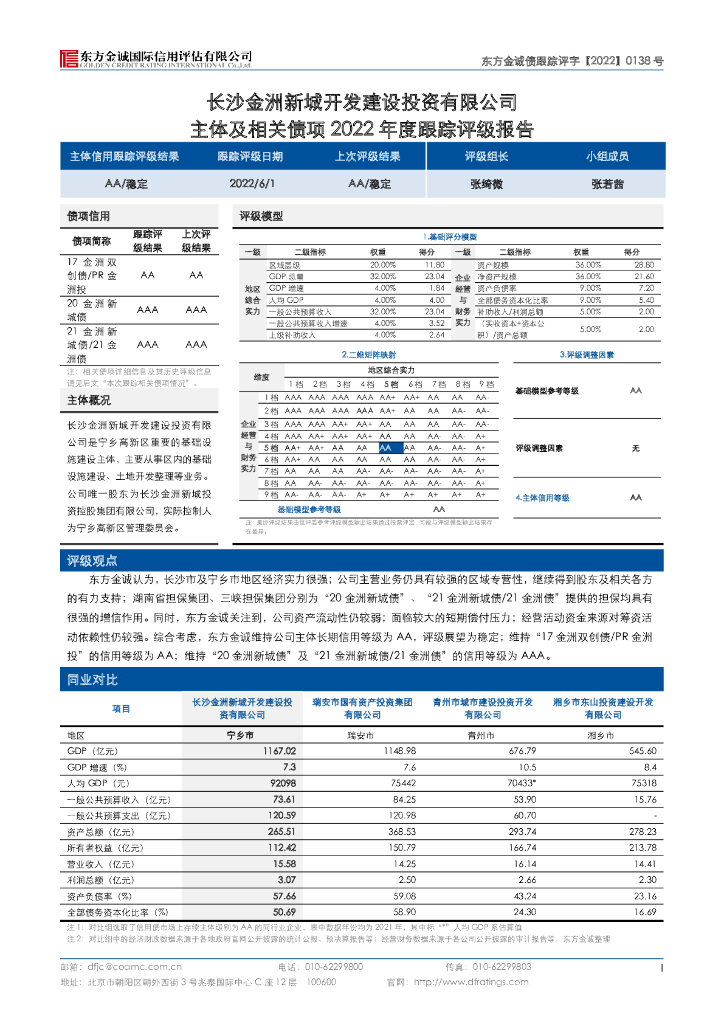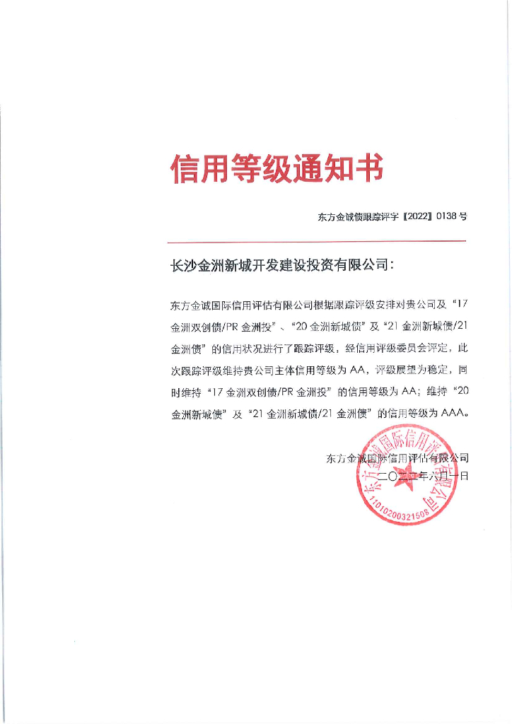 东方金诚:长沙金洲新城开发建设投资有限公司主体及相关债项2022年度跟踪评级报告.pdf