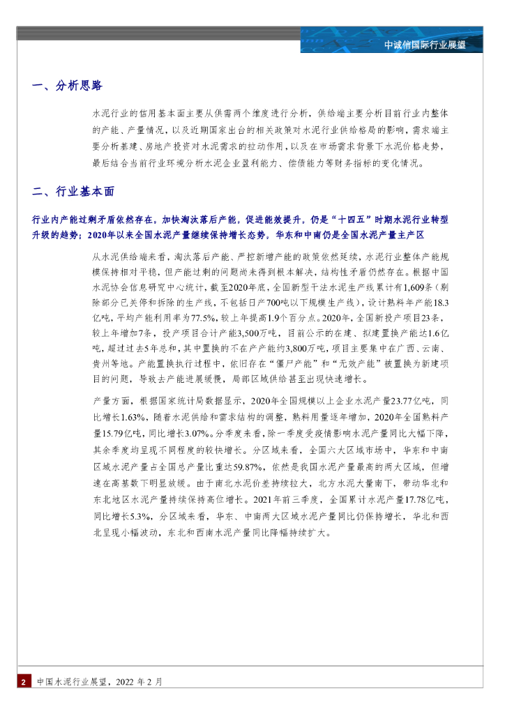中诚信国际:中国水泥行业展望,2022年2月.pdf