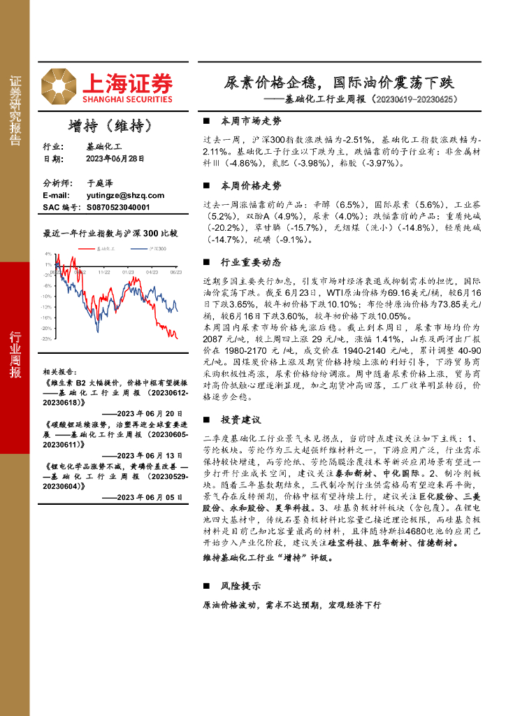 上海证券:基础化工行业周报:尿素价格企稳,国际油价震荡下跌.pdf