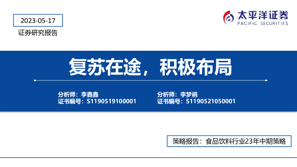 太平洋证券:食品饮料行业23年中期策略:复苏在途,积极布局.pdf