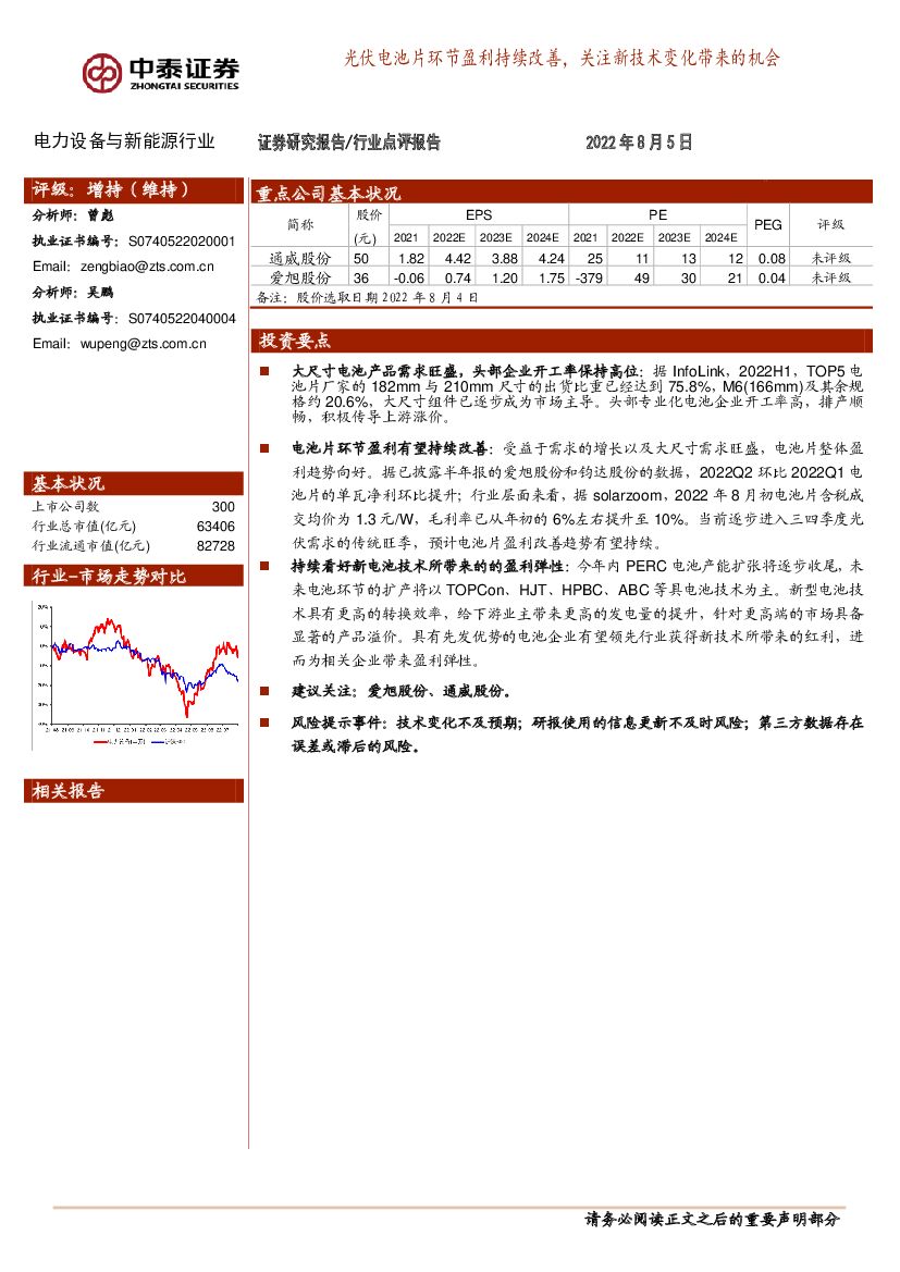 中泰证券:电力设备与新能源行业:光伏电池片环节盈利持续改善,关注新技术变化带来的机会.pdf