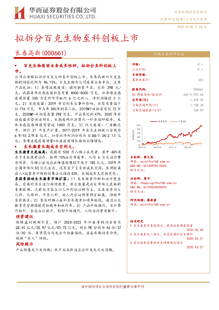 华西证券:长春高新(000661)-拟拆分百克生物至科创板上市.pdf