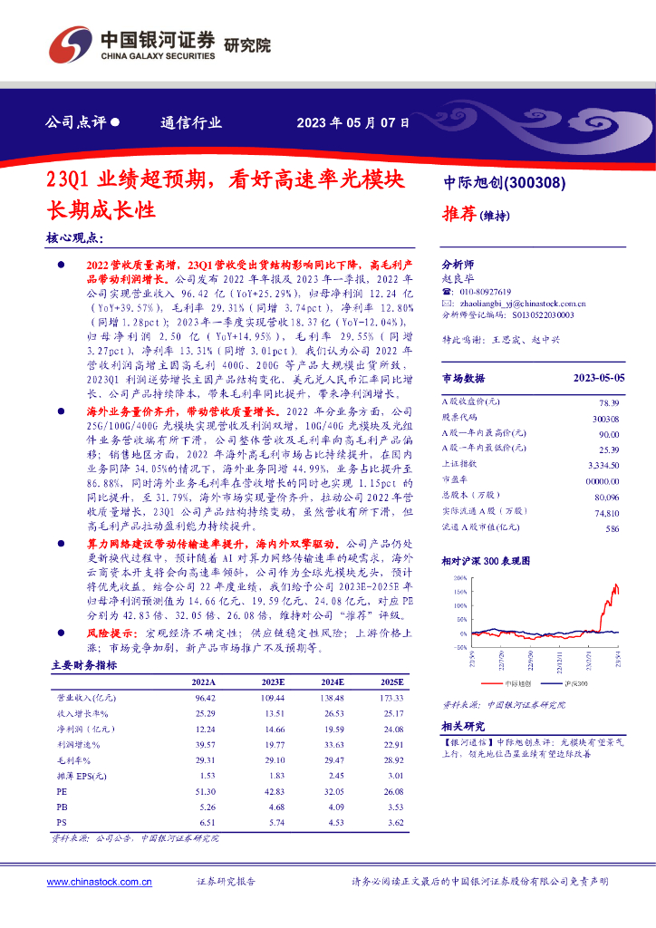 中国银河:中际旭创(300308)-23Q1业绩超预期,看好高速率光模块长期成长性.pdf
