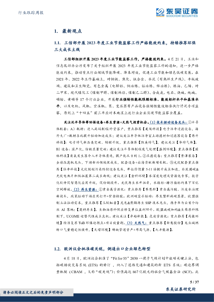 东吴证券:环保行业跟踪周报:工信部开展工业节能监察工作严格能效约束,持续推荐环保三大成长主线标题.pdf