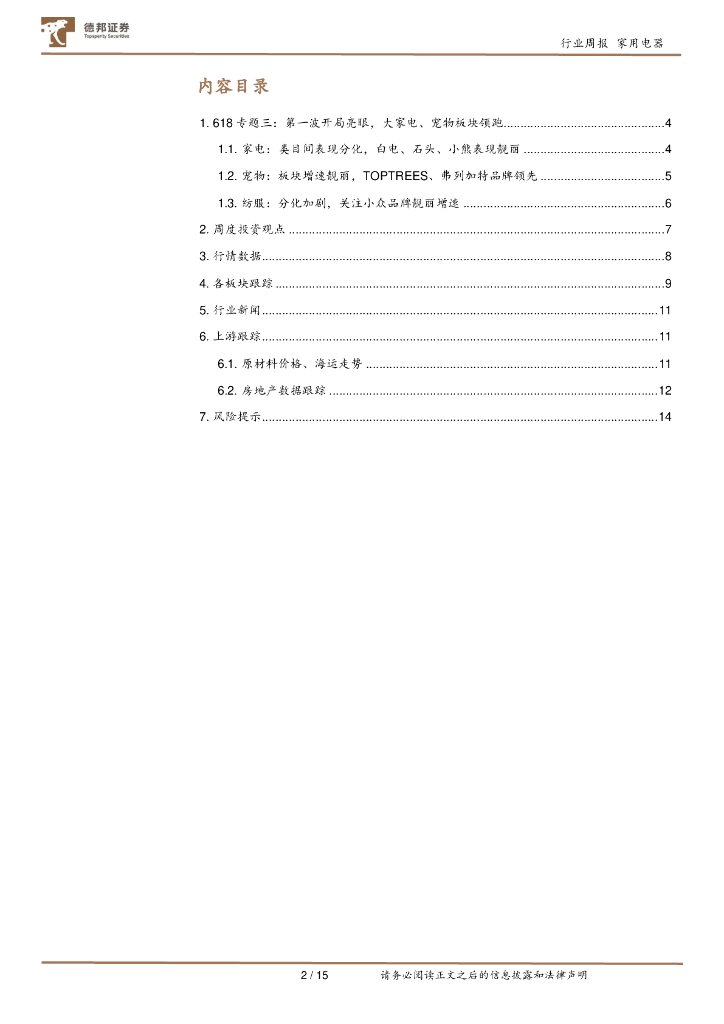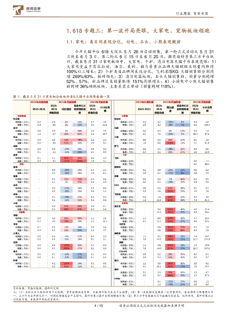 德邦证券:家用电器23W22周观点:618专题三:第一波开局亮眼,大家电、宠物板块领跑.pdf
