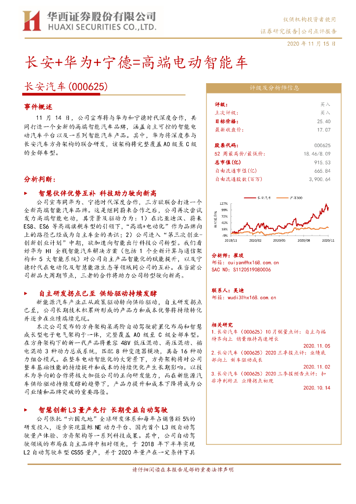 华西证券:长安汽车(000625)-长安+华为+宁德=高端电动智能车.pdf