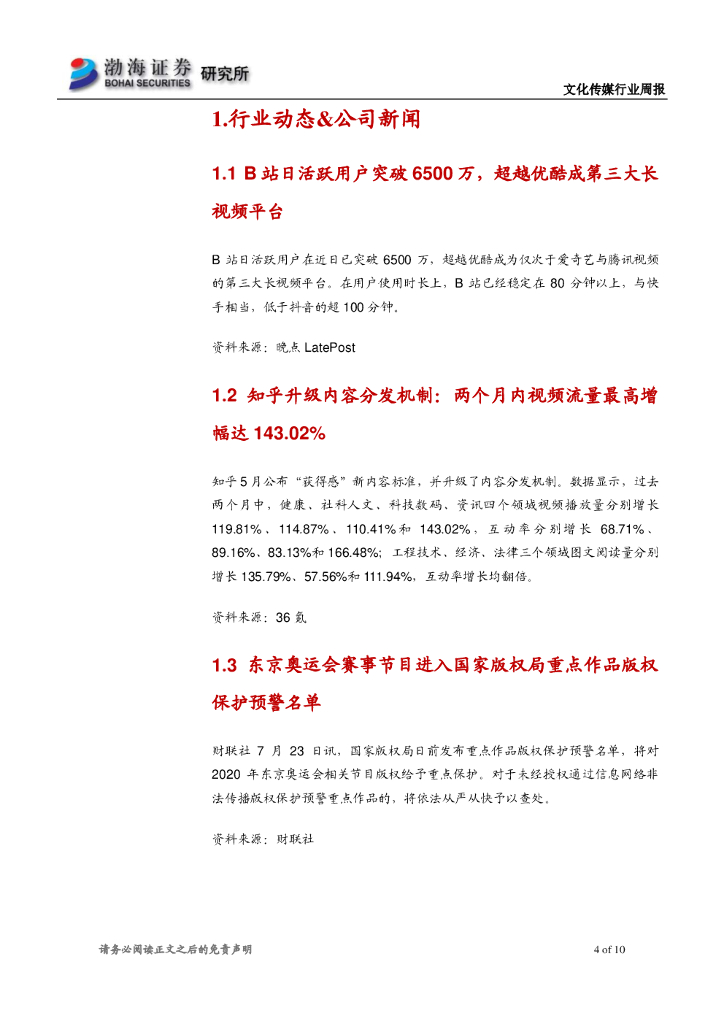 渤海证券:文化传媒行业周报:行情有所活跃,继续关注半年报业绩优秀的公司.pdf