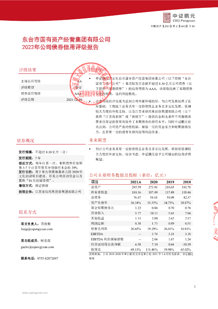 鹏元:2022年东台市国有资产经营集团有限公司公司债券信用评级报告.pdf