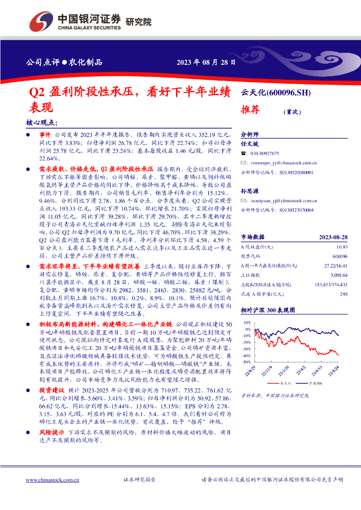 中国银河:云天化(600096)-Q2盈利阶段性承压,看好下半年业绩表现.pdf