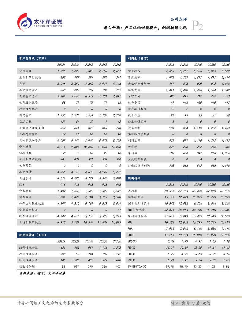 太平洋证券:老白干酒:产品结构继续提升,利润持续兑现.pdf