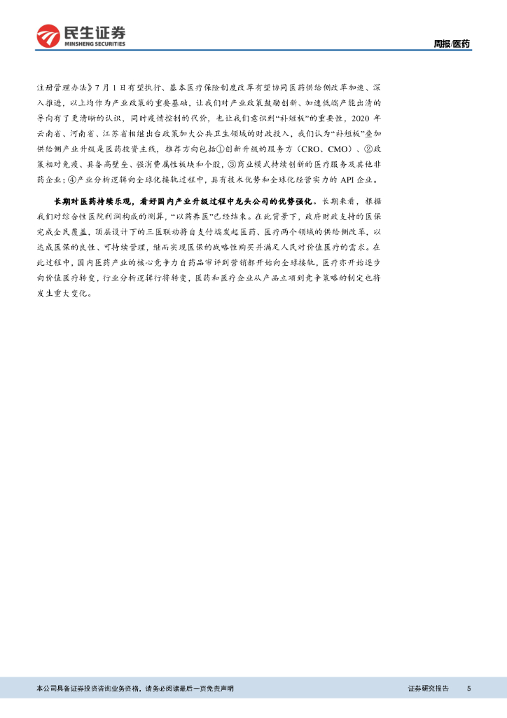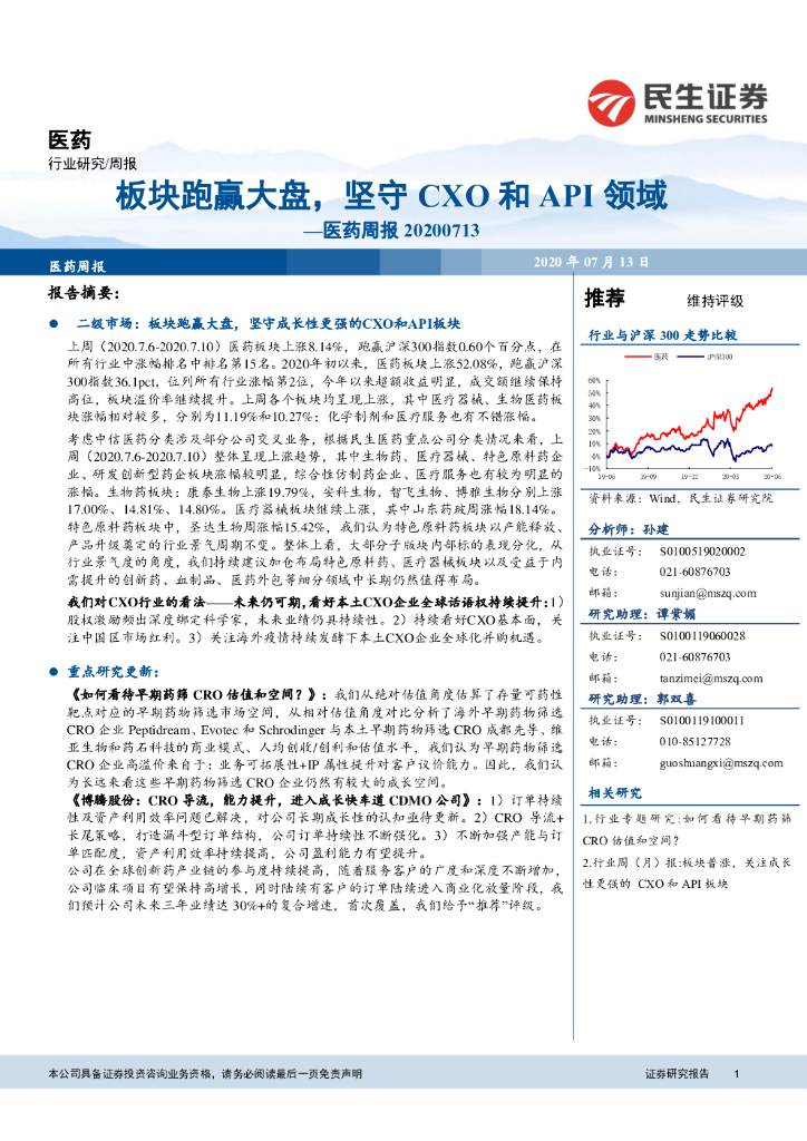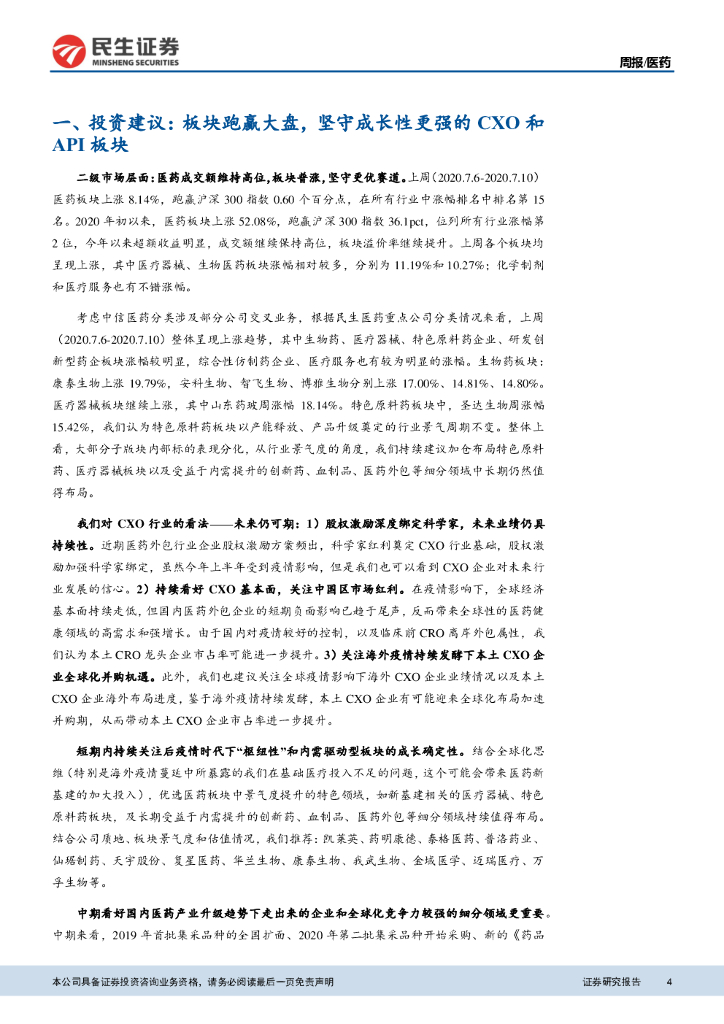 民生证券:医药周报:板块跑赢大盘,坚守CXO和API领域.pdf