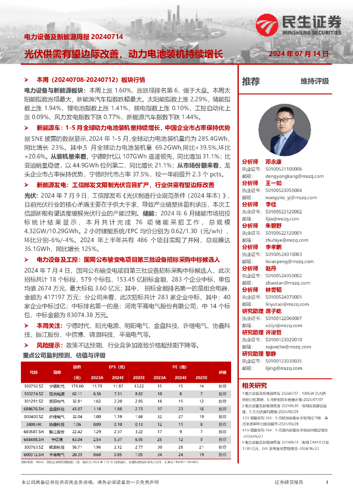 民生证券:电力设备及新能源周报:光伏供需有望边际改善,动力电池装机持续增长.pdf
