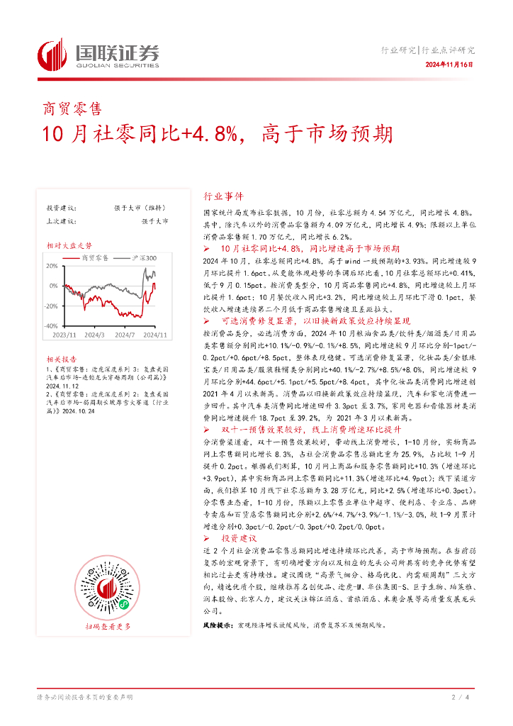 国联证券:商贸零售:10月社零同比+4.8%,高于市场预期.pdf