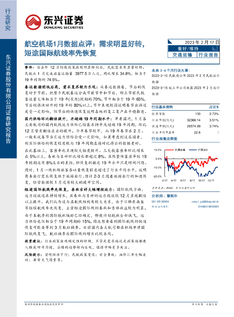 东兴证券:航空机场1月数据点评:需求明显好转,短途国际航线率先恢复.pdf