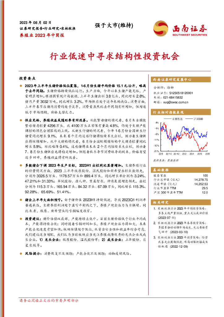 西南证券:养殖业2023年中简报:行业低迷中寻求结构性投资机会.pdf