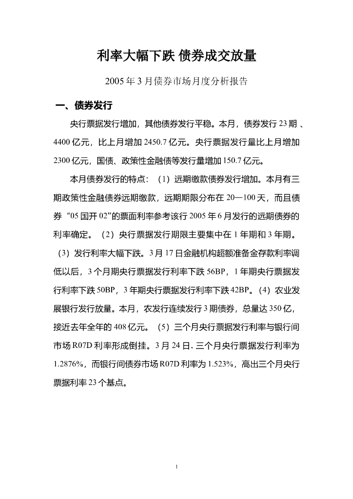 中债研发中心:2005年3月债券市场月度分析报告.doc