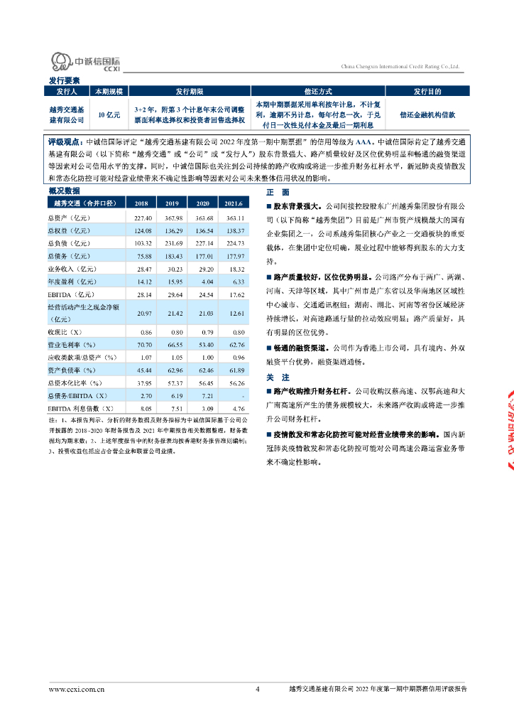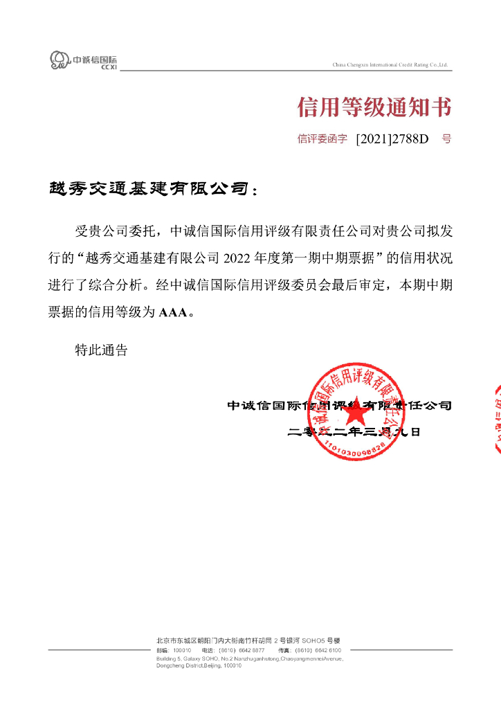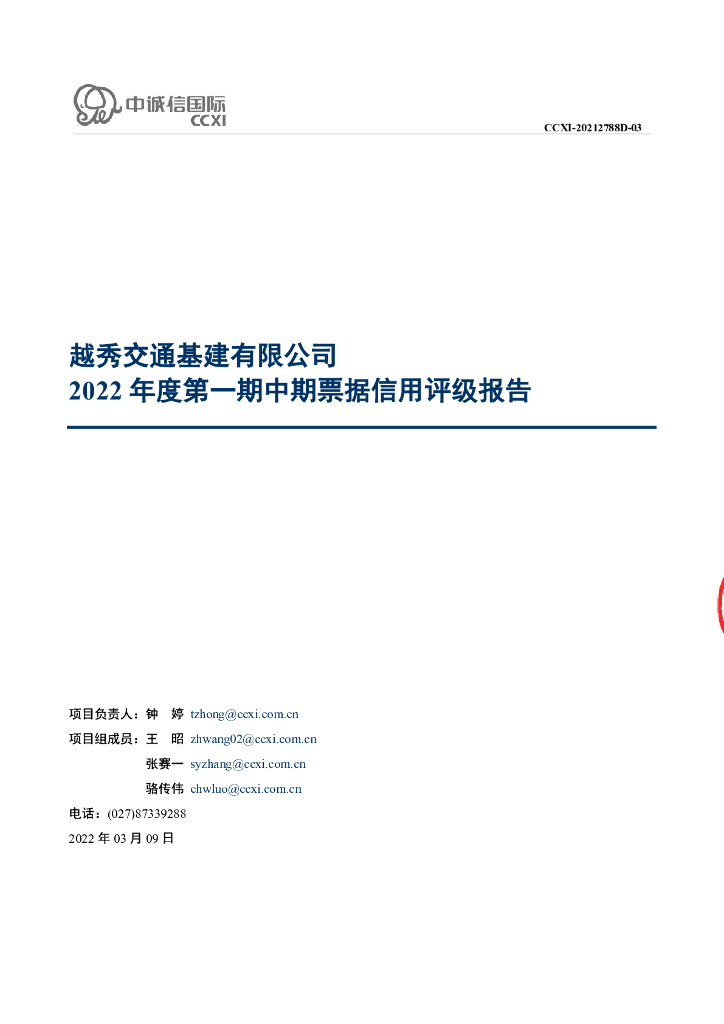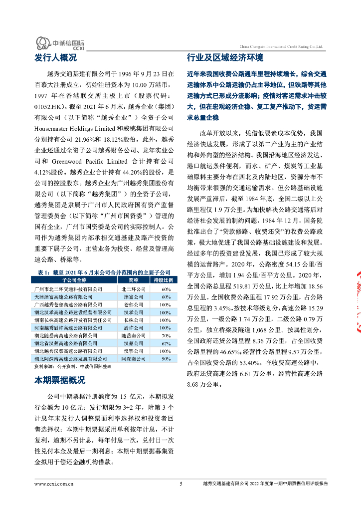 中诚信:越秀交通基建有限公司2022年度第一期中期票据债项信用评级报告及跟踪评级安排.pdf
