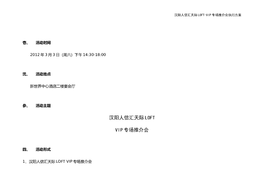 武汉汉阳人信汇天际LOFT VIP专场推介会执行方案.doc