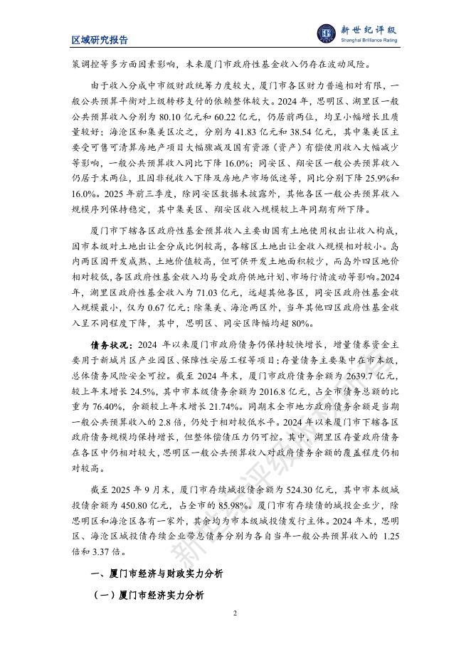新世纪评级:厦门市及下辖各区经济财政实力与债务研究(2025).pdf