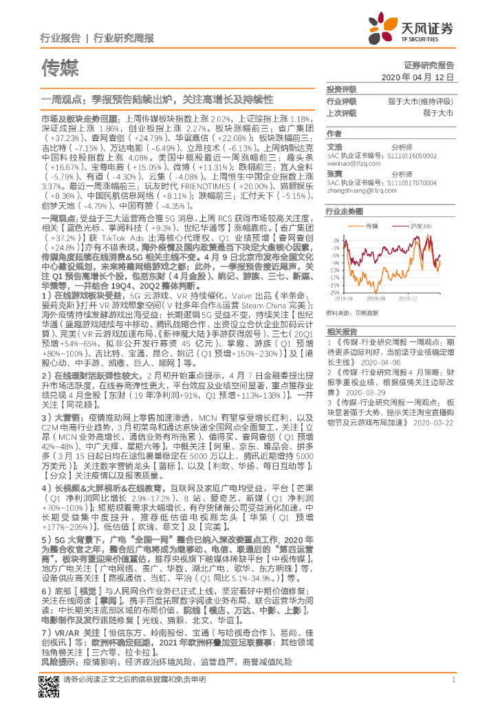 天风证券:传媒一周观点:季报预告陆续出炉,关注高增长及持续性.pdf