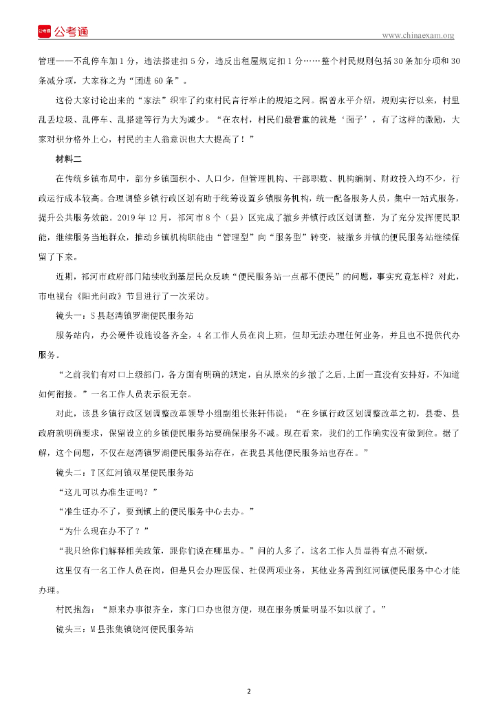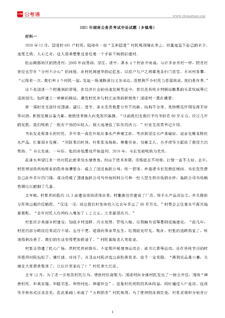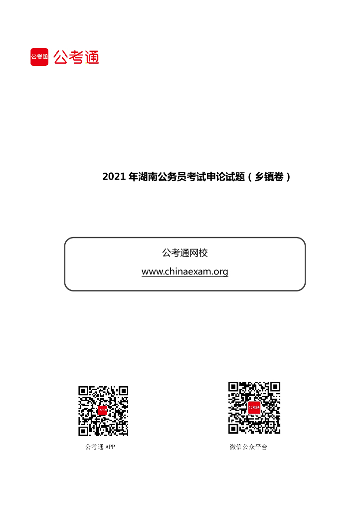 2021年湖南公务员考试申论试题(乡镇卷).pdf