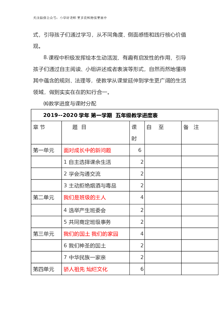 部编版道德与法治5年级上册 教学计划及教学进度.doc