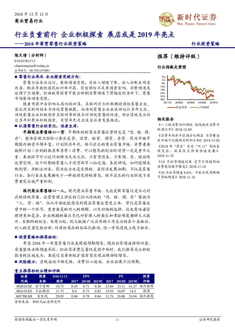 新时代证券:2018年商贸零售行业投资策略:行业负重前行 企业积极探索 展店或是2019年亮点.pdf