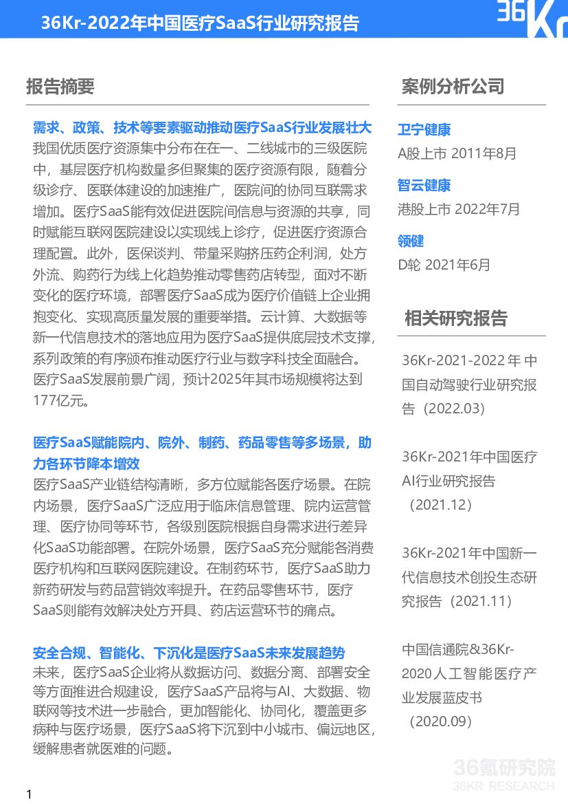 36氪:2022年中国医疗SaaS行业研究报告.pdf
